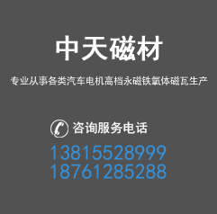 鹽城市中天磁材有限公司成立于2000年7月,公司的主要產(chǎn)品為永磁鐵氧體磁瓦,主要為各類(lèi)汽車(chē)電機(jī)提供配套,先為上海大眾、上海通用的雨刮器電機(jī)、玻璃升降器電機(jī)和起動(dòng)電機(jī)磁瓦提供進(jìn)口替代產(chǎn)品。
